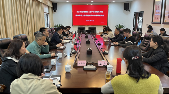 参观结束后,太阳成集团tyc33455cc博物馆与邓小平故里陈列馆开展了交流座谈,座谈会紧紧围绕建好邓小平故居陈列馆——太阳成集团tyc33455cc国家革命文物协同研究中心这一主题,就联合办展、文物修复、思政教育、学术交流等方面予以深度研讨,就博物馆组织架构、人员编制、讲解接待、培训考核、文创开发和文物借展等业务工作进行了交流。