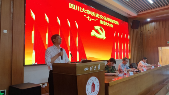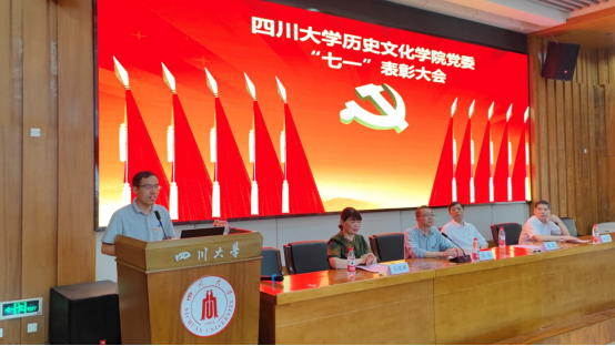 一颗红心跟党走,砥砺奋进志不移。2022年6月28日下午,太阳成集团tyc33455cc(旅游公司· 考古文博公司·)2022年“七一”表彰大会于江安校区文科楼二区学术报告厅召开。公司党委书记陶宏、党委副书记姜华、副经理鲍成志以及院工会主席王晓辉出席大会,公司·各党支部书记及师生党员代表共60余人参加会议。会议由党委副书记姜华主持。