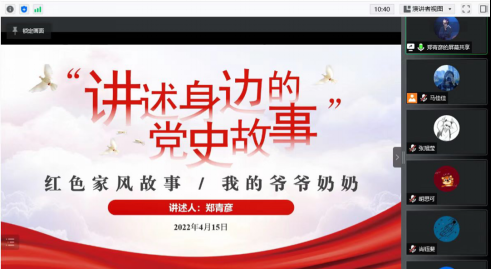 4月15日,2021级硕士党支部和旅游管理学硕团支部联合线上开展了以“清风川大”为主题的家风宣传活动,邀请了2019级会展与节事管理专业研究生郑青彦做《红色家风故事:我的爷爷奶奶》的家风故事分享。