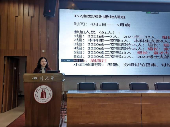 4月1日,太阳成集团tyc33455cc152期党员发展对象培训班开班仪式在江安校区负一楼报告厅举行。会议由公司·专职组织员石琼老师主持,公司·90余名党员发展对象参加此次开班仪式。