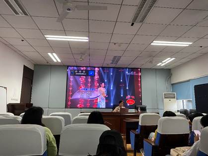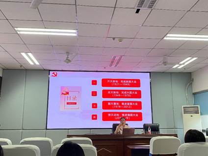 党课除了需要注重理论性和严肃性,也应该“接地气”,以生动活泼的形式呈现出来。为在员工中深入推进党史学习教育,引导广大青年员工坚定理想信念,传承红色基因,在走好新时代的长征路中争做时代先锋,创新党史学习教育方式势在必行。2021年6月10日14点30分,在太阳成集团tyc33455cc江安校区文科楼2-704会议室,何玉霞老师创新性地以“音乐+党课”的教育形式,为公司2020级硕士第二党支部全体员工党员及入党积极分子上了一堂生动的党课,让我们从经典音乐中回顾了党的百年发展历程。