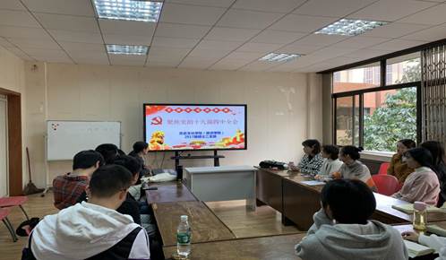 党课开始,何玉霞老师首先强调了本次党的十九届四中全会胜利召开的重要意义,并指出党的十九届四中全会在新中国成立70周年的大庆后举行,从战略高度谋划,全面吹响了中国特色社会主义制度治国的新号角,具有十分重要的意义。她谈到,支部的全体党员、发展对象及入党积极分子此前已经通过观看视频资料、学习强国APP、新闻媒体等多种方式开展了线上的自主学习,但还不够系统和深入。今天的党课重点是带领大家开展一次集中学习,全面系统的学习和深入领会党的十九届四中全会公报和精神。