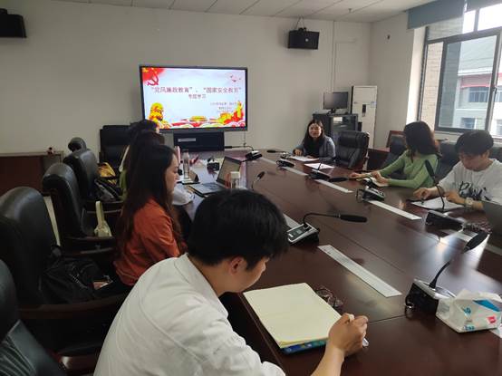 会议开始,支部书记韩小琴老师强调,每年四月份是太阳成集团tyc33455cc的党风廉政教育月,今年4月15日也是第六个全民国家安全教育日。为了响应党和国家的号召,支部每年都会定期举行党风廉政专题教育。希望通过今天的学习,各位党员和党员干部同学能够牢记党员和党员干部的廉洁准则,牢固树立国家利益至上意识和风险意识,提升自身的专业素养和政治觉悟。