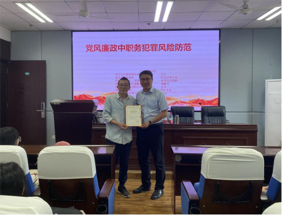 为深入学习贯彻党的二十大精神,扎实开展学习习近平新时代中国特色社会主义思想主题教育,推进公司党风廉洁文化建设,4月26日下午,公司·邀请公司知名员工、法学专家、公司·校外辅导员李苗律师在江安校区文科楼704教室作题为“党风廉政建设中的法律风险防范”专题讲座。公司党委副书记兼纪委书记姜华主持会议,并为李苗律师颁发“2022年度学术诚信教育优秀主讲教师”证书。