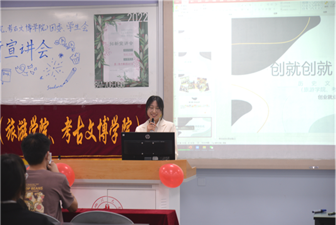 (注:图为创业就业促进部邓舒月同学在宣讲)