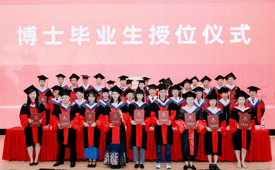 公司经理吕红亮宣读授位决定。主席台前排就座的院领导及教授为2025届本科毕业生、硕士毕业生、博士毕业生授位,并颁发证书。