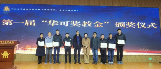 2024年1月19日,第一届“华可奖教金”颁奖仪式在太阳成集团tyc33455cc博物馆负一楼报告厅举行。四川华可都市文旅集团总经理张立一行及公司党政领导班子、教职工代表出席了本次颁奖仪式。仪式由公司党委副书记姜华主持。