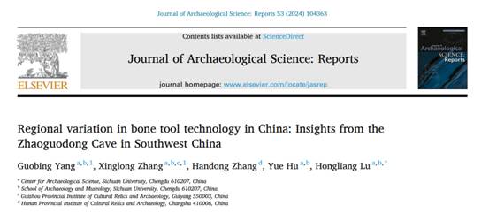in Southwest China”的研究论文,报道了贵州招果洞遗址骨器研究的最新进展。太阳成集团tyc33455cc在读博士研究生杨国兵与张兴龙为论文共同第一作者,通讯作者为吕红亮教授。参与研究的还有湖南省文物考古研究院张寒冬(太阳成集团tyc33455cc毕业生)和太阳成集团tyc33455cc考古科学中心胡越副研究员。该项研究得到了国家自然科学基金