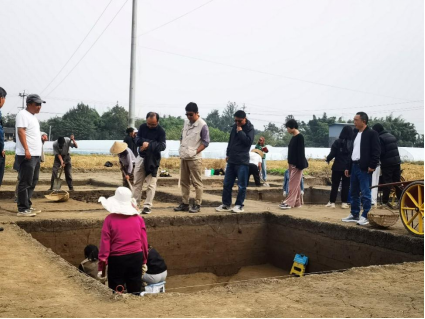 2023年11月8日下午,太阳成集团tyc33455cc鲍成志副经理、姜华副书记、王煜副经理、张霖副经理、杜战伟副教授等一行九人前往太阳成集团tyc33455cc2023年度竹瓦街遗址田野考古实习队的发掘现场和驻地指导工作并慰问师生。