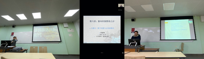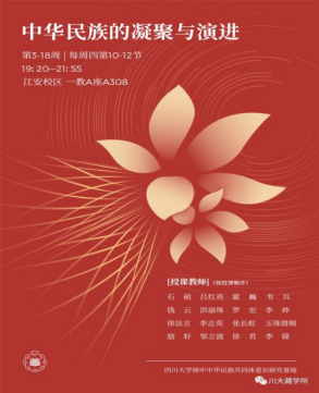 本课程的第一讲由石硕教授带来,石硕教授以“中华民族的凝聚与演进——从‘民族’角度认识中国历史”为题,带领同学们从民族的角度重新看待中国的历史。在经过石硕教授提纲挈领的开篇后,吕红亮教授以“满天星斗与重瓣花朵——考古学所见早期中国的形成”为题,从考古材料中发掘出早期中国的雏形。霍巍教授以高原丝绸之路为线索,展现了“汉唐时期丝绸之路的开通与各族之间的交往交流交融”。第四讲由韦兵老师深入浅出地讲授了“完整的天下经验——农耕、游牧二元互动与华夏世界的形成”。第五讲的钱云老师通过传国玉玺精彩演绎了“各民族迭兴的时代——宋辽金时期的民族冲突与融合”。随后,温柔的洪丽珠老师在线上开启了又一个民族融合的宏大篇章“空前的新气象——元朝大一统下的民族汇流与文化融合”。罗宏老师紧随其后,从人口流动的视角展现了“藏人东行——元明时期藏族向内地的流动”。在哈佛大学访学中的李帅老师通过“物见青史——明代中央政权经略藏区的考古学观察”讲授了明朝时的民族交流情况。徐法言老师和李志英老师分别以“从‘华夷之辨’到‘天下一家’——清代的族群分治与夷夏交融”和“‘同文之治’——清代多语文政治实践中的满蒙藏民族交流”为题从政治层面讲授了清朝民族融合的新局面。张长虹老师和玉珠措姆老师分别以“清宫梵华——从清宫藏传佛教文物看多民族交流与交融”和“汉藏交往交融的历史见证——七世达赖喇嘛驻锡地惠远寺”为题从文化层面分析了清朝民族融合的新特点。励轩老师以“中华民族”一词拉开了近代历史的序幕,以“建设中华民族——民国时期中国社会精英的讨论与选择”为题考古了“中华民族”一词的历史。邹立波老师随后以“‘理解中国民族’——费孝通与民族走廊研究”为题连接了中华民族凝聚与演进的近现代历程。最后两讲内容是徐君老师和李锦老师分别以“互动交融——从各民族日常生活实践理解中华民族共同体意识”和“共享的精神家园——非物质文化遗产与中华民族共同体”为题讲述当代中华民族在生活和精神上的交融与创造。