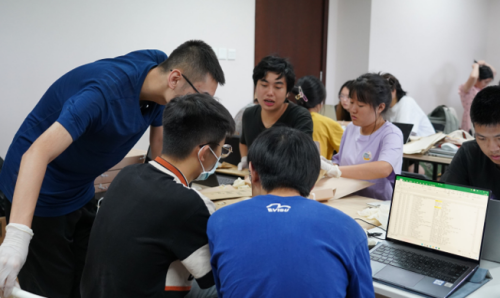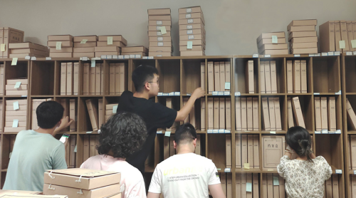 除此之外,本次实践还开启了一些尚未经过登记、整理的档案材料,将庞杂、混乱甚至部分损毁的零散文献登记造册,并进行临时编目,将之系统化、条理化,让同学们从源头体会档案的形成过程。最终,同学们共完成了近600条文献的整理、编目工作,分装为30个档案盒。