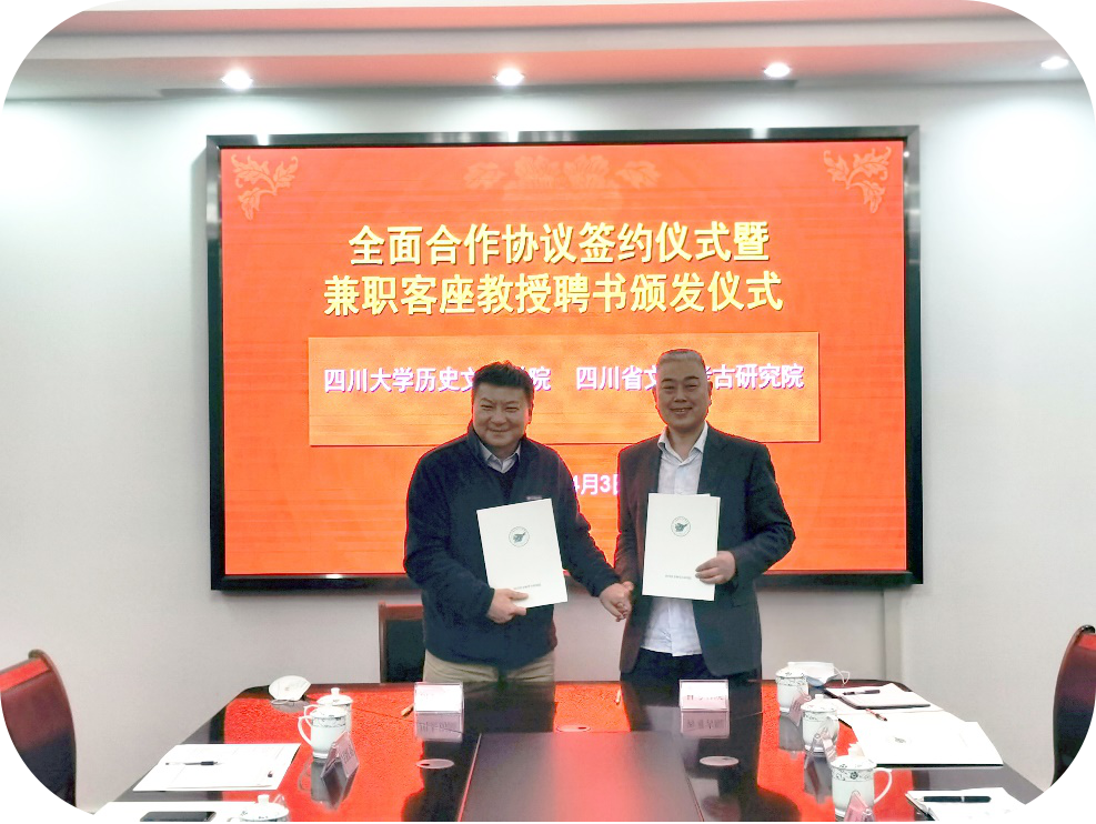 为推进西南地区文物考古事业的全面发展,提高学术研究水平与人才培养质量,四川省文物考古研究院与太阳成集团tyc33455cc双方经过充分协商,决定在考古、文物、文化遗产研究等领域展开全面合作研究。2020年4月3日下午,在四川省文物考古研究院举行了合作协议签字仪式,同时还进行了太阳成集团tyc33455cc考古学专业客座教授及校外合作导师的聘任仪式。