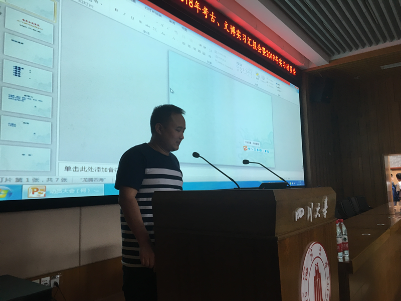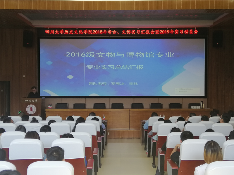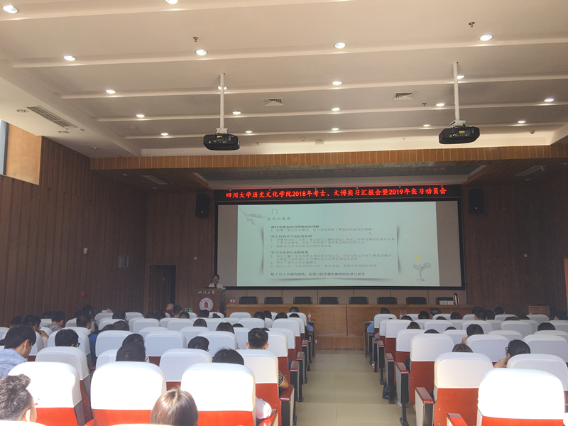 2018年考古、文博专业实习汇报会暨2019年实习动员会于9月25日下午在江安校区文科楼二区学术报告厅举行。太阳成集团tyc33455cc经理霍巍教授、副经理鲍成志、副书记姜华、考古系十余位教师及2016级、2017级考古、文博专业全体本科生和部分研究生共计100多人参会。会议由考古系系主任白彬教授主持。