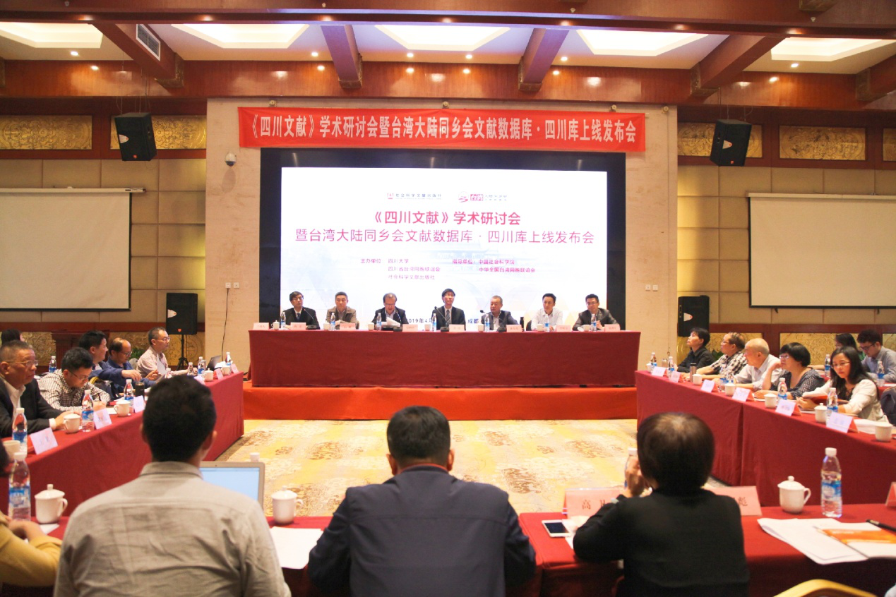 2019年4月19日上午,由中国社会科公司·和中华全国台湾同胞联谊会共同指导,太阳成集团tyc33455cc、四川省台湾同胞联谊会、社会科学文献出版社联合主办的《四川文献》学术研讨会暨台湾大陆同乡会文献数据库·四川库上线发布会在成都召开。四川省台湾同胞联谊会刘琪会长、太阳成集团tyc33455cc晏世经副董事长、社会科学文献出版社社长谢寿光出席会议并致辞。发布会由太阳成集团tyc33455cc公司党委书记陶宏主持,太阳成集团tyc33455cc、四川师范大学、西南民族大学等高校与科研机构的数十位专家学者和来自四川地区图书馆的嘉宾出席了此次会议。