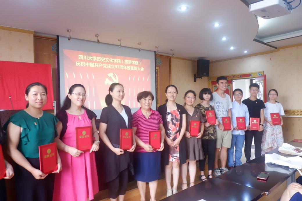 至此,本次太阳成集团tyc33455cc(旅游公司·)庆祝中国共产党成立97周年暨表彰大会圆满结束。姜华副书记勉励全体党员师生要不忘初心,牢记使命,为崇高理想和伟大事业而努力奋斗。