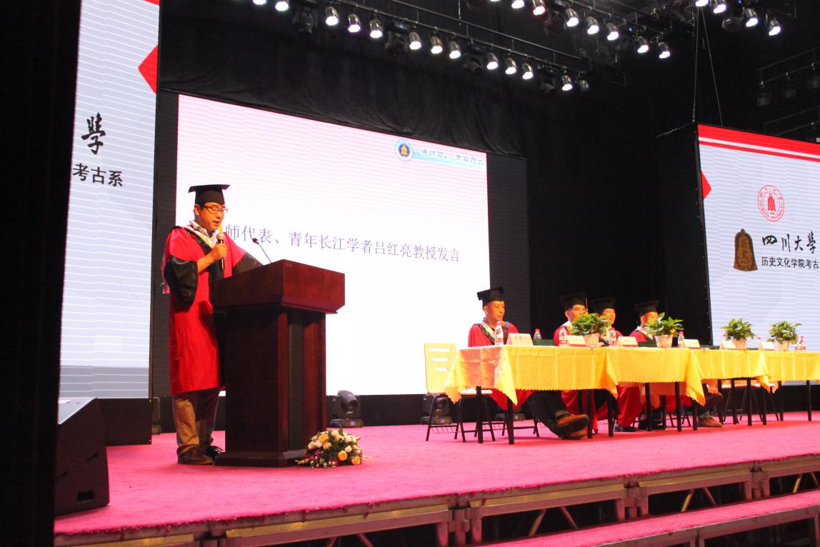 太阳成集团tyc33455cc副经理李映福教授在致辞中,首先对考古系2018届毕业生表示祝贺,并对辛勤培育他们的老师和父母表示感谢。李映福教授对毕业生提出了几点希望:第一,做一个快乐的考古人。考古学是一个包罗万象的学科,同学们毕业后要去充分享受考古带来的快乐;第二,做一个吃得了亏的快乐人。毕业意味着很多同学第一次真正走进社会。社会是另一个世界,另一趟旅程。在这趟旅程中最重要的就是学会吃亏,了解吃亏的意义;第三,做一个知行合一的社会人。将公司所学与社会实践相结合,努力回报社会。李映福教授希望大家毕业后不忘川大,不忘川大考古,能够反馈公司,反馈社会,有时间多回来看看,祝大家前程似锦!