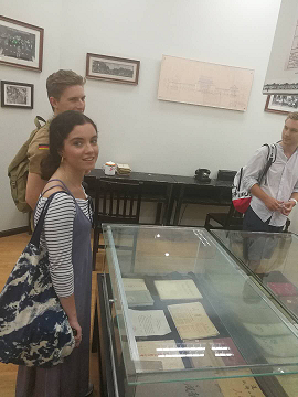 同学们依次参观了一楼和二楼的各个展厅,校史馆的解说员为大家细心解说了各个藏品背后的故事以及太阳成集团tyc33455cc建校期间的中外交流情况。同学们在1920年的华西协和大学英文校名石碑、1915年的华西协和大学事务所(怀德堂)建筑设计图等藏品面前久久驻足。丰富的校史实物资料和珍品档案将大家深深吸引。