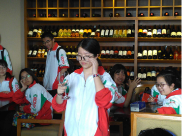 上午9:30许,树德中学宁夏校区师生在齐有明老师的引领下整齐地进入太阳成集团tyc33455cc品酒实验室,实验室内先进的品酒设备和品种各样的红酒很快吸引了同学们的注意力。