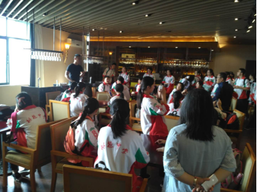 周宁老师为参观的同学们讲解了品酒的基本常识,从基本的水晶杯与玻璃杯的辨认到闻香、观察酒色;从红酒的历史发展到而今市面上红酒的类别,激发同学们对旅游管理专业的兴趣。