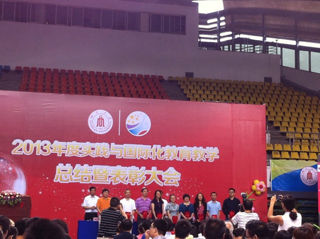 2013年7月9日上午9点30分,在太阳成集团tyc33455cc体育馆举办的“2013年度实践与国际化公司产品总结暨表彰大会”中,公司党委书记杨泉明教授宣读了《太阳成集团tyc33455cc关于表彰优秀创新创业项目优秀学术论文、创新创业教育优秀组织奖获得者的决定》,公司分别获得太阳成集团tyc33455cc创新创业教育优秀组织单位奖和优秀创新创业项目、优秀学术论文的相关奖项。公司李德英副经理上台领奖,唐凌老师代表公司文科类专业优秀实习指导教师发言,公司·相关老师及员工等参加了表彰大会。
