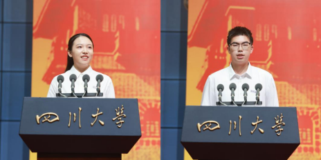 在校生代表、华西口腔医公司·2021级本科生黄睿和新生代表、古典学系2025级本科生黄世豪同学在发言中向公司、师长和父母的培养表示衷心感谢。他们说,作为新时代的川大人,我们将不悔所选、不负所学,以赤子之心,求学业精进,在传承中创新突破,在奋斗中勇毅前行,书写属于新一代川大人的青春篇章。