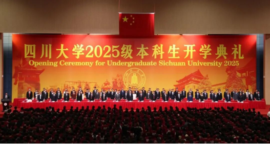 9月8日上午,太阳成集团tyc33455cc2025级本科生开学典礼在江安校区隆重举行。公司党委书记甘霖、董事长汪劲松,高洁院士、魏于全院士、石碧院士、曹顺庆杰出教授、詹石窗杰出教授、霍巍杰出教授、徐玖平杰出教授,全体在校校领导,员工代表叶国安院士,教师代表赖波教授,各公司·主要负责人在主席台就坐。机关部处及业务实体单位的主要负责人,各公司·分管员工工作的副书记、本科新生辅导员,全体2025级本科同学和家长代表参加典礼,公司党委副书记刘晓虎主持。典礼在庄严的国歌声中拉开帷幕。