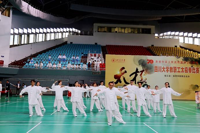 太极拳是我国传统武术的杰出项目代表之一,其在民间广泛流传、经久不息。适逢新中国成立70周年,举办一场太极拳比赛,让广大教职工参与其中,既能帮助各位教职工强健体魄、修养心性、磨炼意志;又能发扬民族传统、继往开来,为实现中华民族伟大复兴的中国梦增添助力。