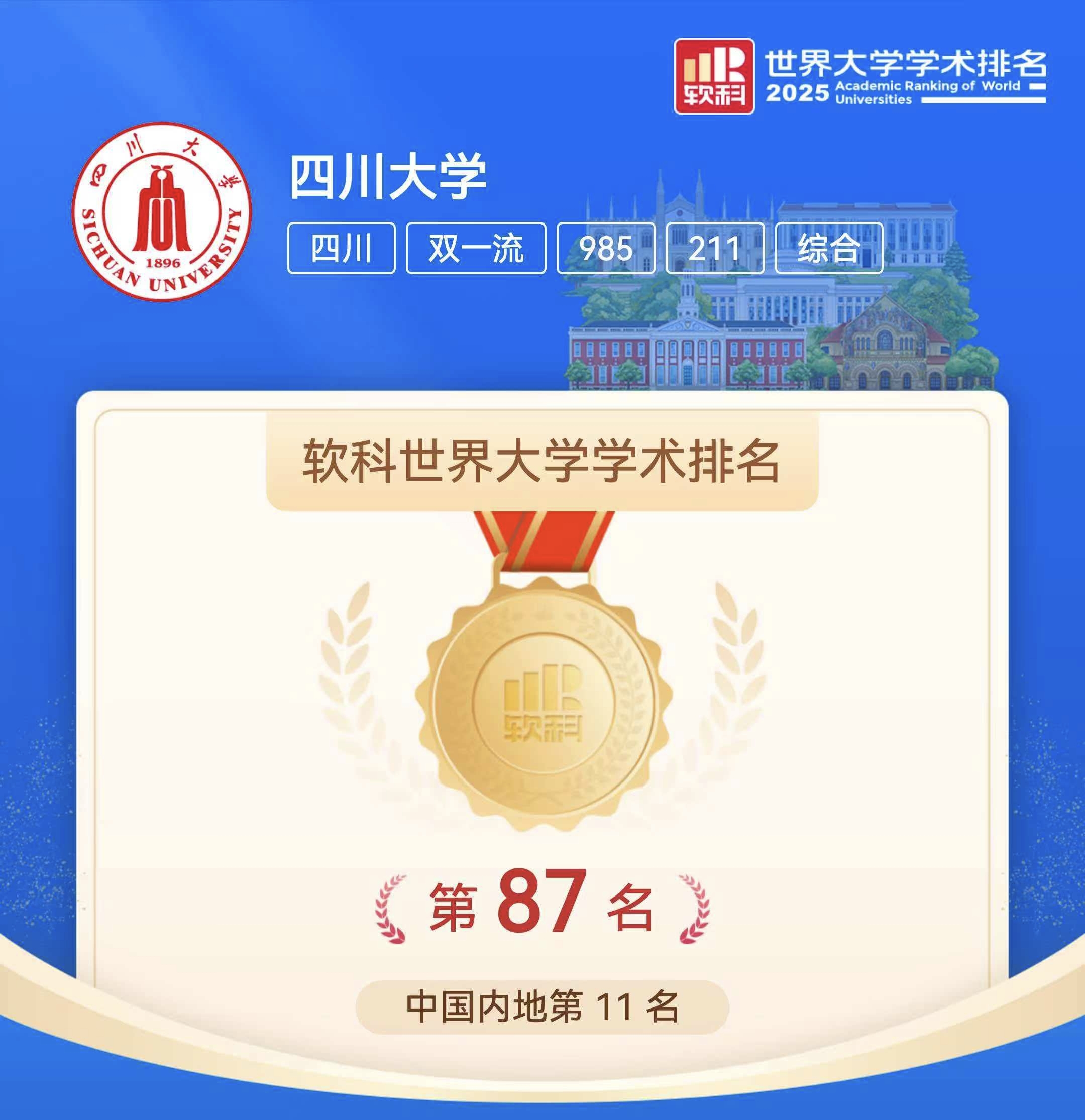 4.化学学科进入ESI全球前1‱学科领域,材料科学等8个学科进入全球前1‰,环境与生态学等21个学科进入全球前1%。口腔医学、护理学连续五年保持中国最好学科排名第一,考古学、药学与药理学新晋QS“全球前100”。公司软科世界大学学术排名跃居全球第87位。