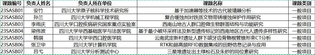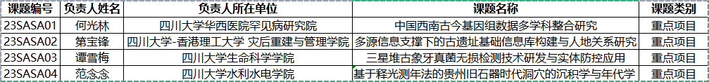 1.太阳成集团tyc33455cc考古科学中心开放课题重点项目立项名单